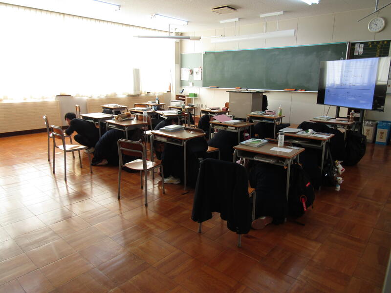 今回は生徒への事前予告をしない形式で、地震発生を想定した訓練でした。